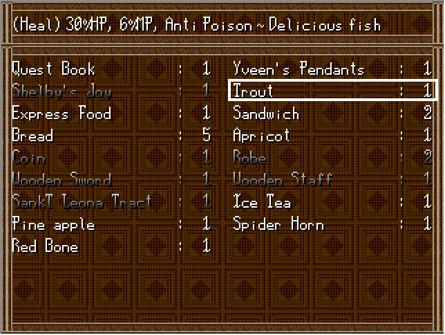 When we leave the south docks I run into the last enemy type on the plains. They're not much stronger than a troll. Worth 3 XP and 10 GP each, and have a chance to drop an 'Express Food'.
