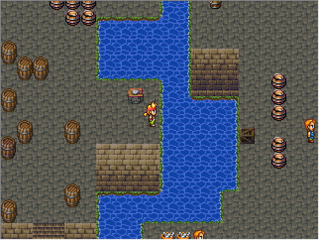 The docks are split in half by a river or something for no real reason and I find a nice item and some gold in various barrels. Otherwise there's not much interesting going on.
