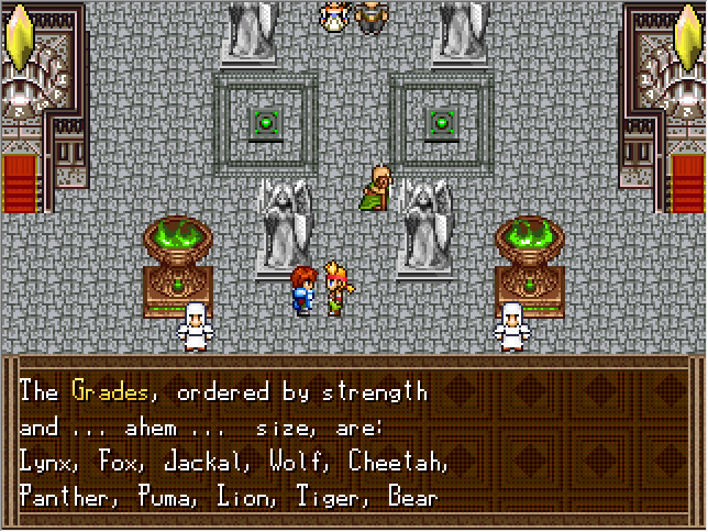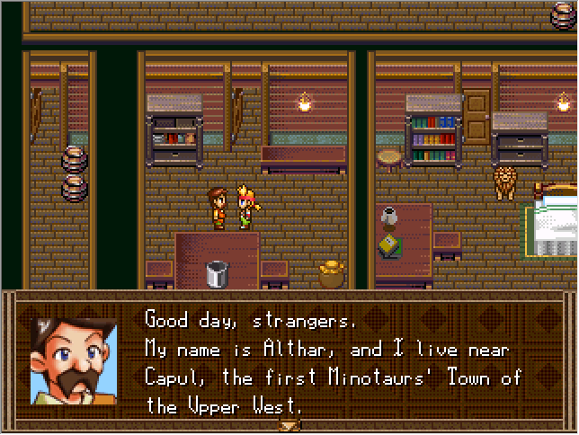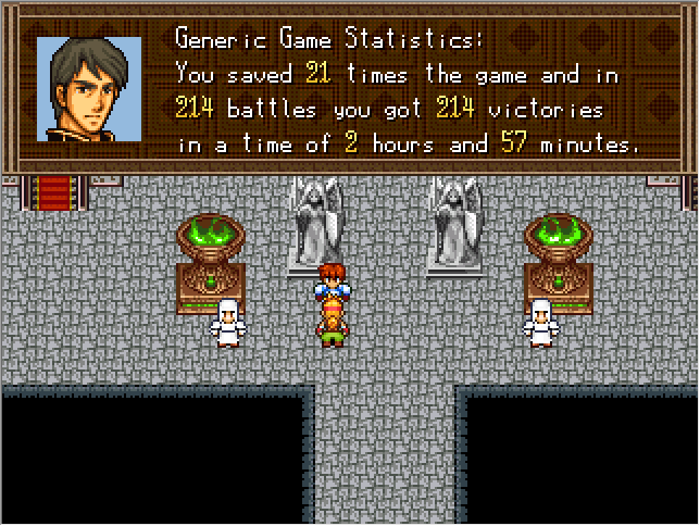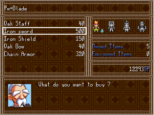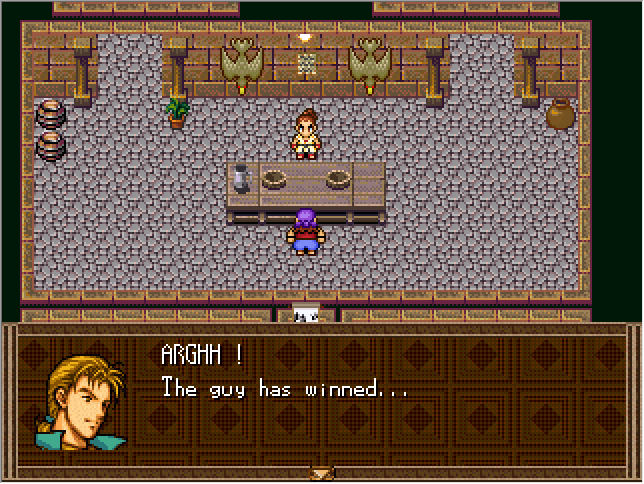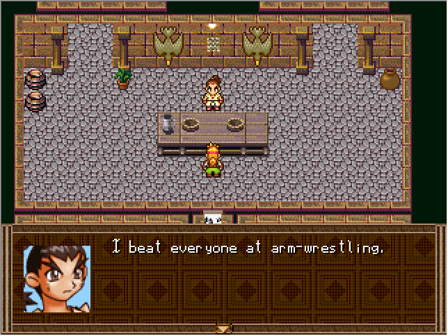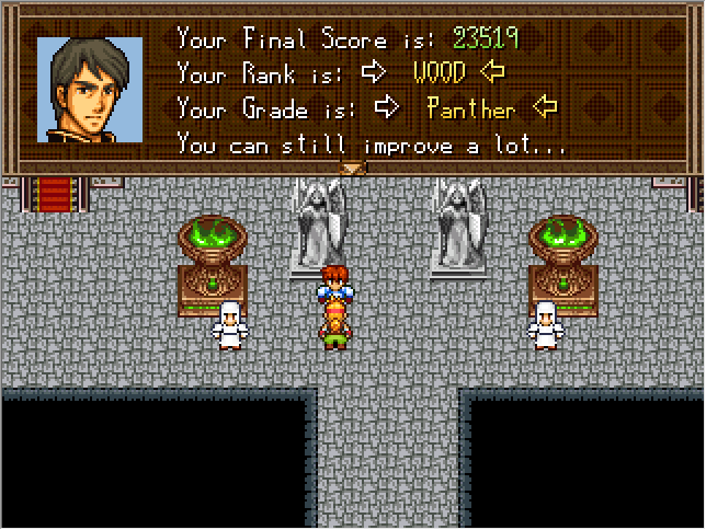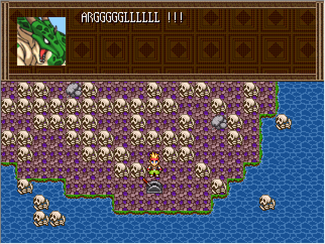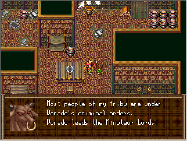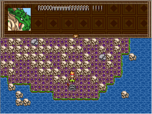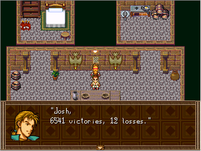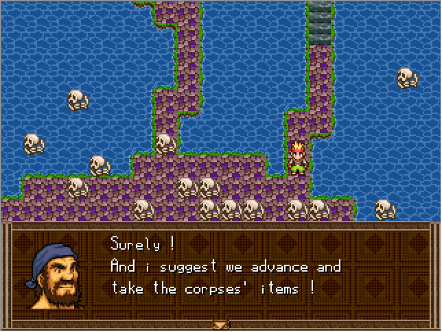 He is... uh... A rather lacklustre boss. As we kill him in one turn with all our best moves, before he even does anything. 40XP and 60Gp.