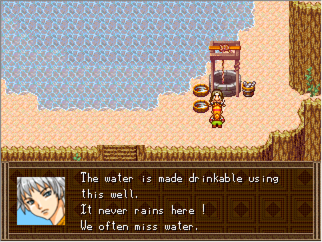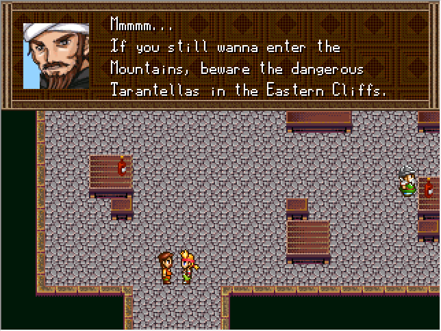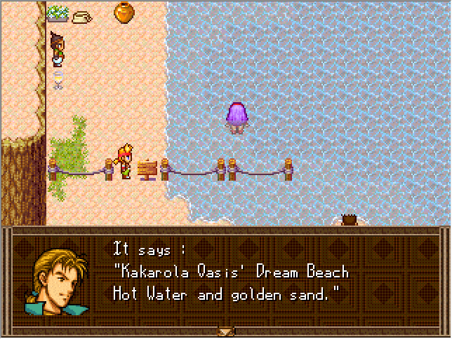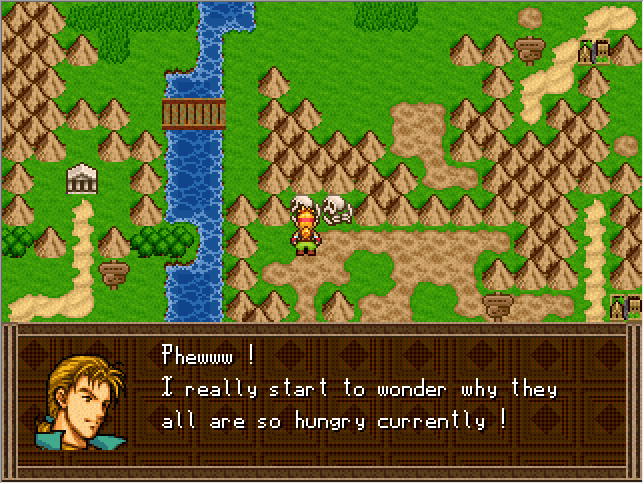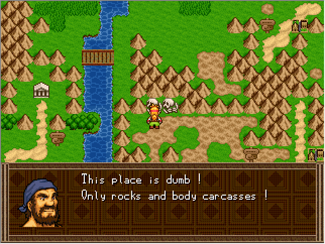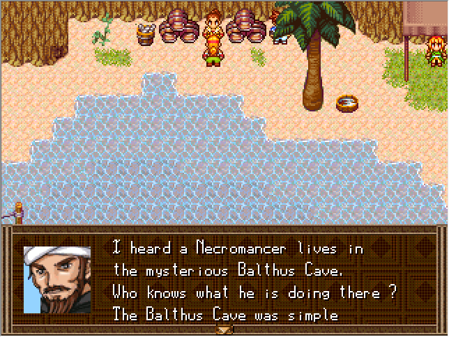 Anyway, this guy tells us about the ghost town to the north. Pallalaa. Dorado wanted to show off his strength so he 'spread hundred of evil foes' on a nice village. The plain turned into a desert and 'all lifeforms got killed by the fire, the extremely hot sun, or the undeads.' It gets worse every day and he wonders if any humans yet live there.