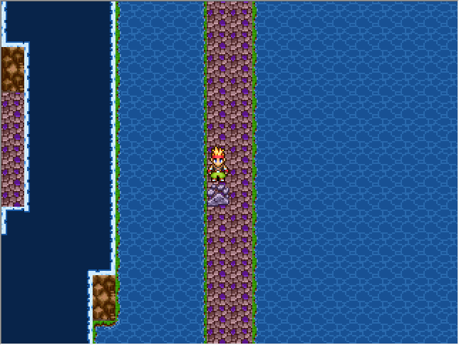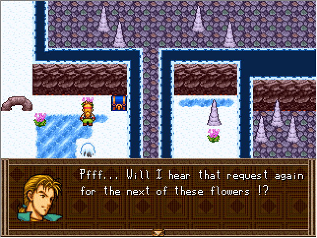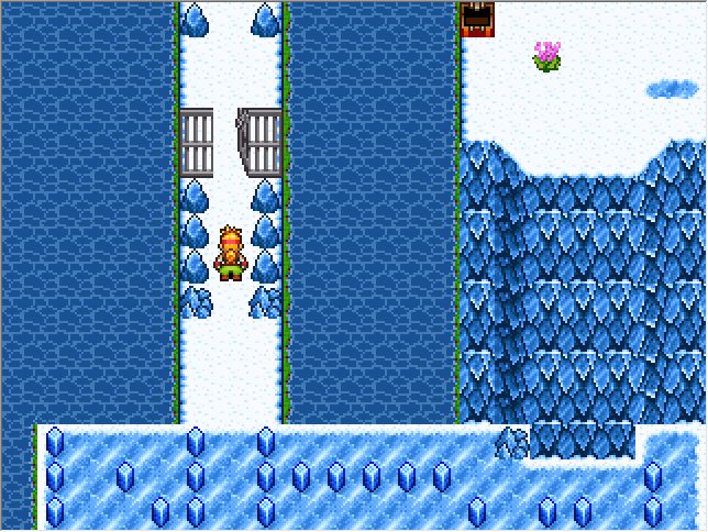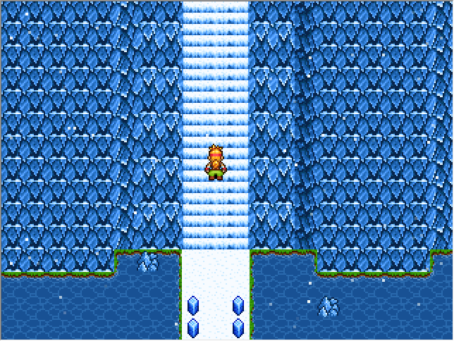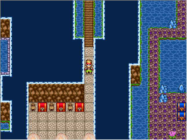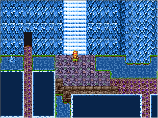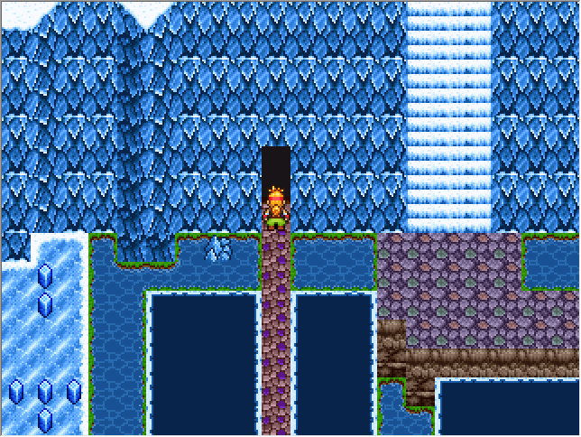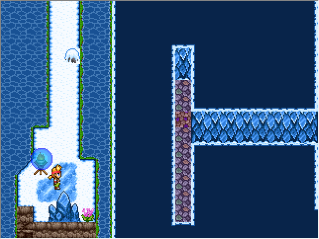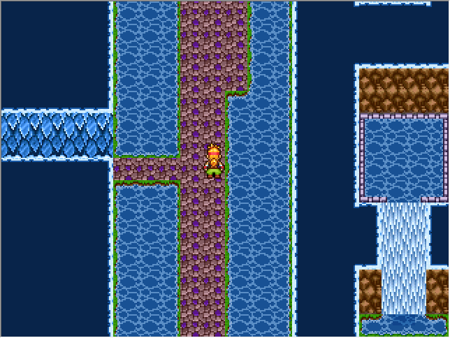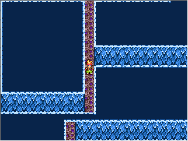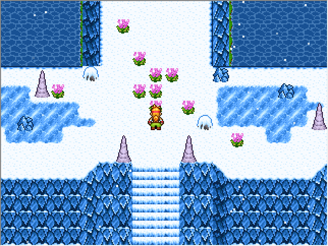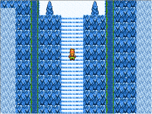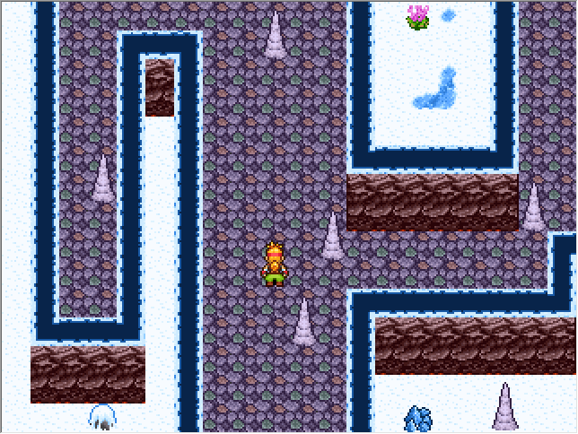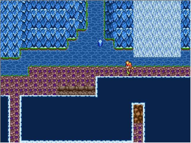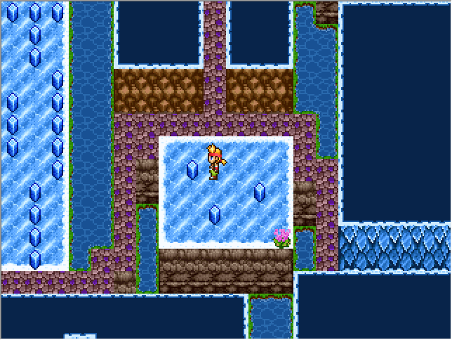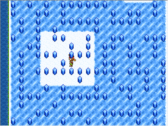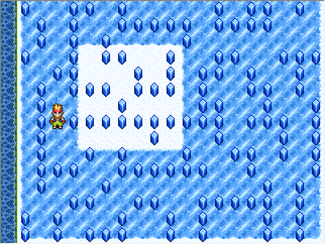 The trick to this maze is the same deal as the Forest Maze. You can see Randoms hair going beneath the sprite of the crystal north of him. You can walk through that one. Annoying!