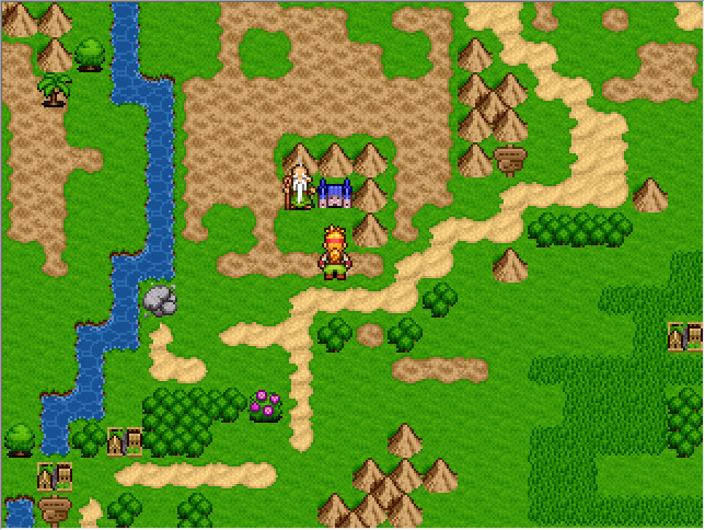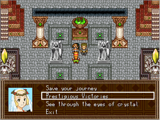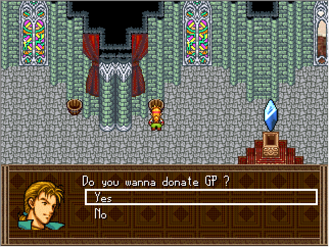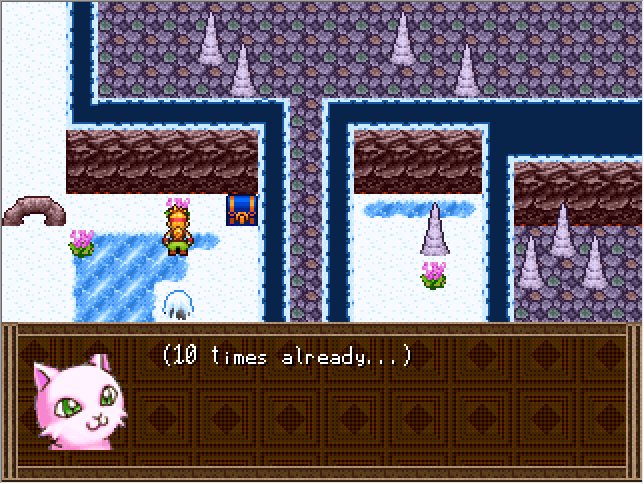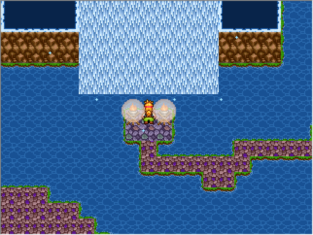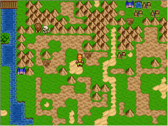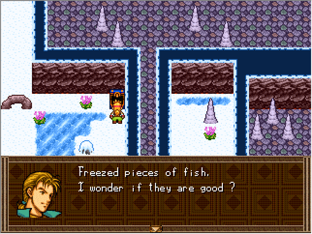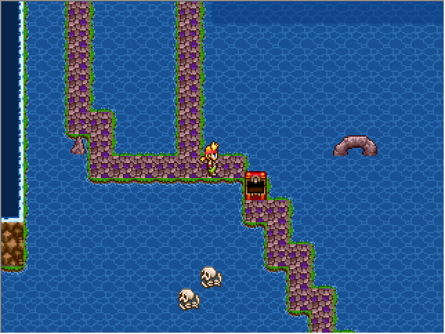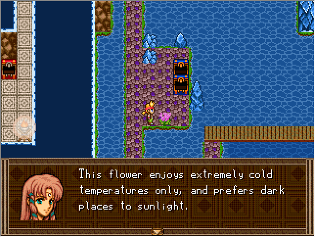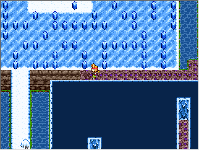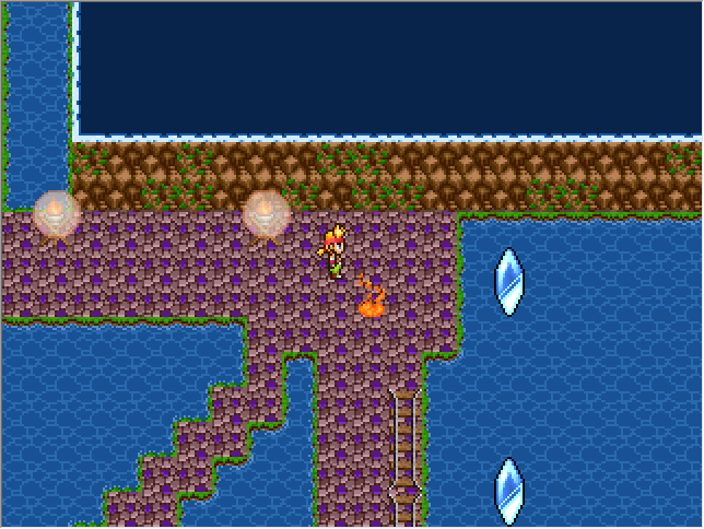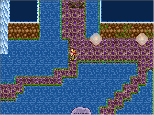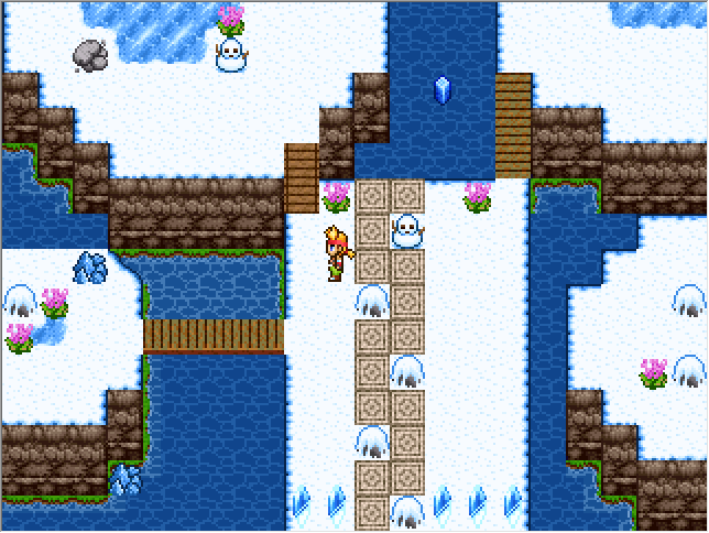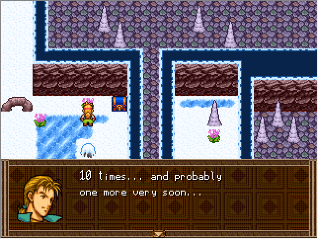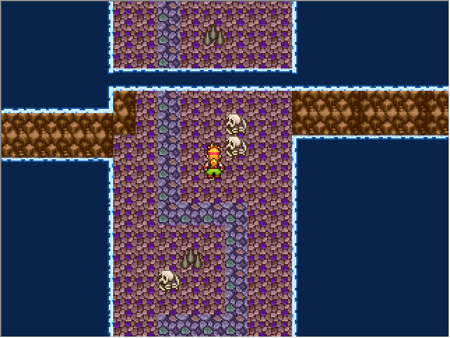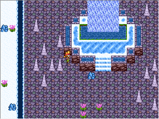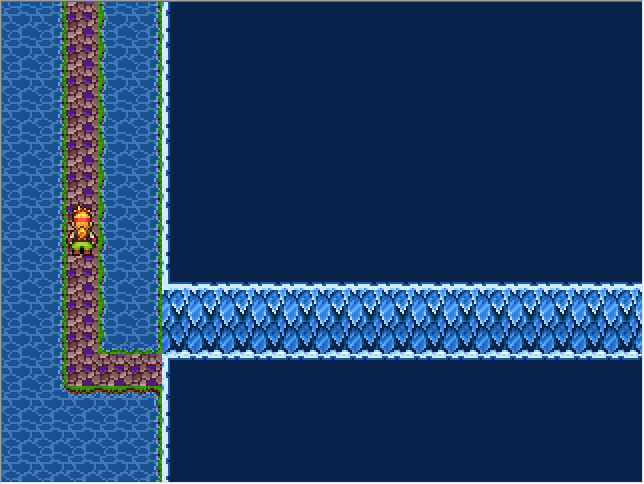 The trick to this maze is the same deal as the Forest Maze. You can see Randoms hair going beneath the sprite of the crystal north of him. You can walk through that one. Annoying!