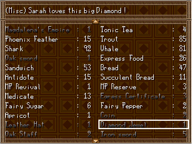 Sarah's talking about two Diamonds here. The other chests have GP and a Chrome Sword.